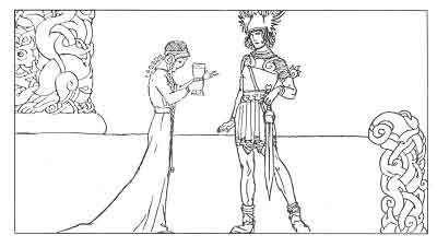 She mixed the potion. Then one night when there was feasting in the hall of the Nibelungs, she gave the cup that held the potion into the hands of Gudrun and bade her carry it to Sigurd.
